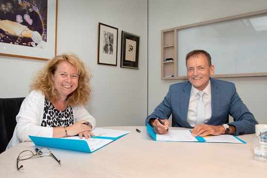 Marjo Vissers (VGZ) en Gerard van Berlo (ETZ) bekrachtigen de meerjarenovereenkomst met hun handtekening