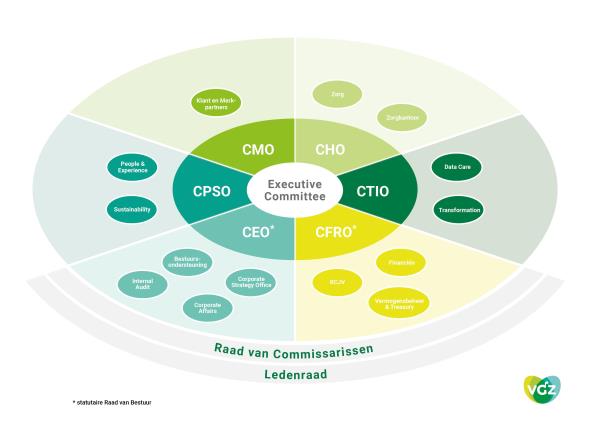 Het Executive Committee is per 15 juni aanstaande het besluitvormend orgaan dat Coöperatie VGZ als één geheel aan zal sturen. Dit zogenoemde ExCo heeft gezamenlijk de dagelijkse leiding over VGZ en bestaat uit zes leden, waarvan twee leden de statutaire rol van Raad van Bestuur vervullen: Karien van Gennip als Chief Executive Officer (CEO) en Kees Hamster als Chief Financial and Risk Officer (CFRO). Daarnaast heeft het ExCo nog vier leden. Het gaat om de volgende functies: