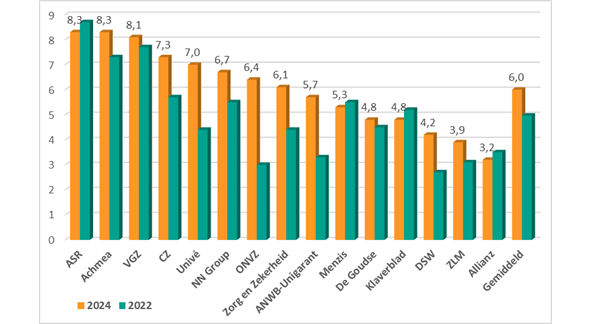 VGZ mag zich met een gemiddeld rapportcijfer van 8,1 nu tot de drie koplopers rekenen. Een mooie stijging ten opzichte van de vorige meting, en ruim boven het gemiddelde rapportcijfer (6) van alle verzekeraars. Het is ook duidelijk zichtbaar dat het gemiddelde van de markt is gestegen. We laten hiermee een mooie verbetering zien, en dat is wat mij betreft een goed signaal.