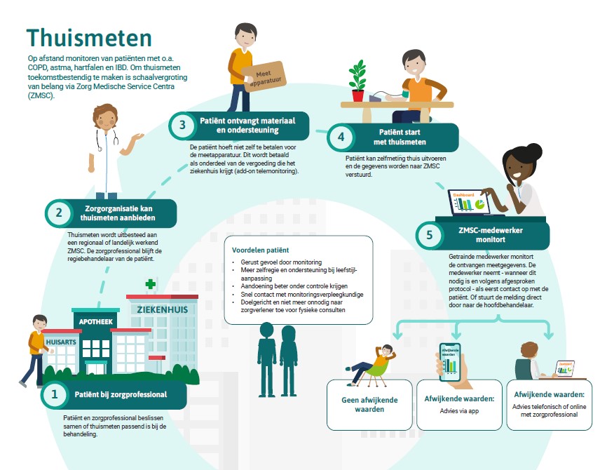 Thuismonitoring implementeren vanuit een Zorg Medisch Servicecentrum (ZMSC) zorgt voor versnelde en geprofessionaliseerd inzet. Altide en Zorg bij jou zijn voorbeelden van zo'n ZMSC.